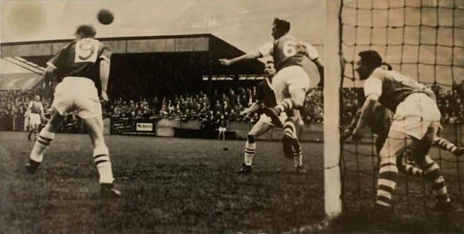 “I sort of timed my run, a 12-yard run from centre-half, and I got there just perfectly and it just smashed off my forehead and it hit the crossbar and, it had been raining that day and, I don't know if you've ever seen this happen in football but it hit the underside of the crossbar, my header, and it zoomed all the way down the back of the net, down the nearside of the net.
